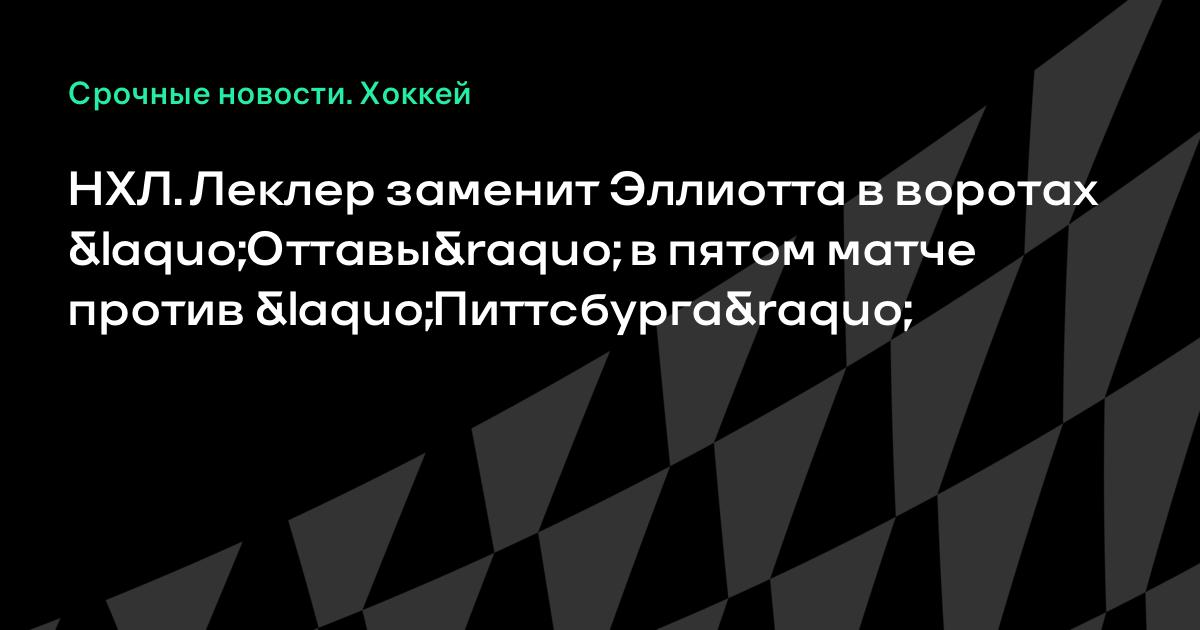 НХЛ. Леклер заменит Эллиотта в воротах «Оттавы» в пятом матче против «Питтсбурга»