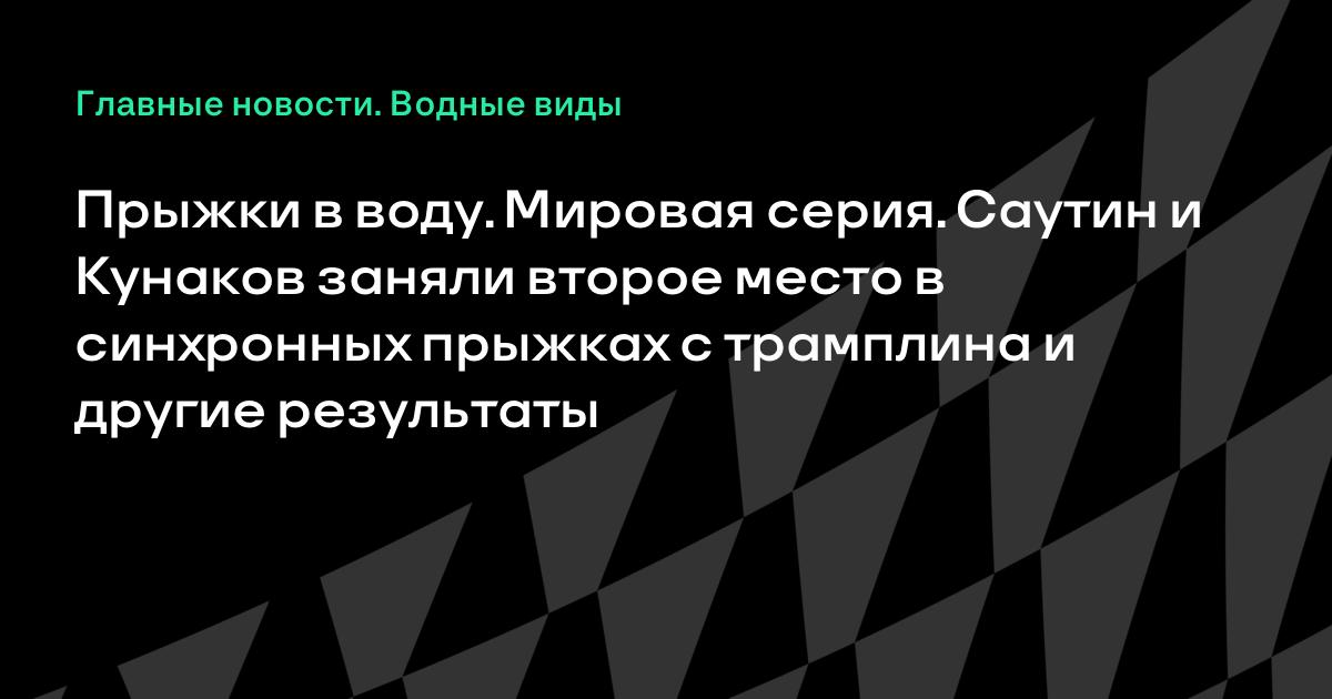 Прыжки в воду. Мировая серия. Саутин и Кунаков заняли второе место в синхронных прыжках с трамплина и другие результаты