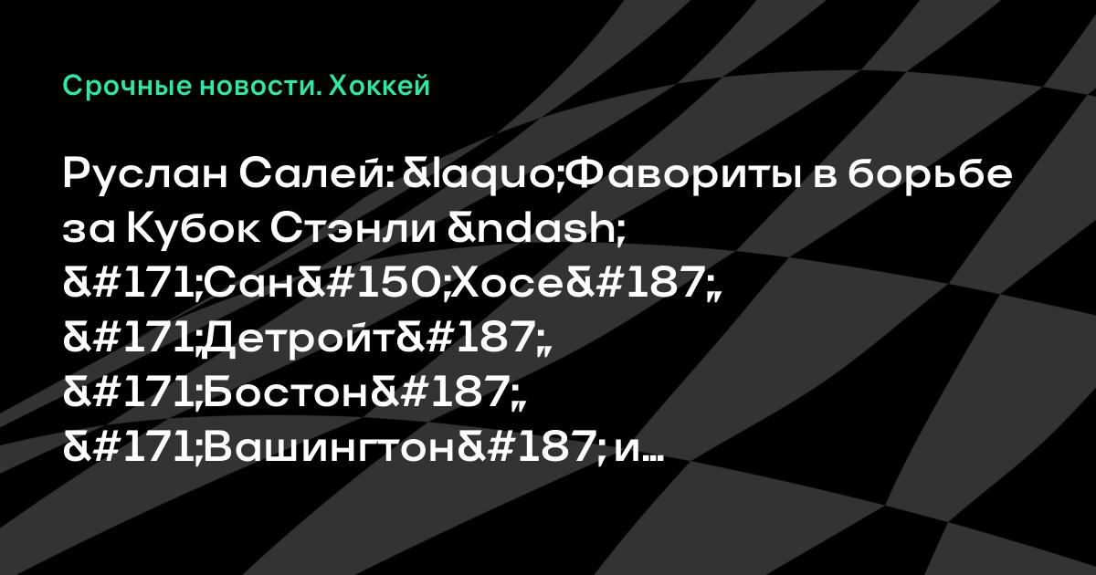 Руслан Салей: «Фавориты в борьбе за Кубок Стэнли – «СанХосе», «Детройт», «Бостон», «Вашингтон» и «Филадельфия»»