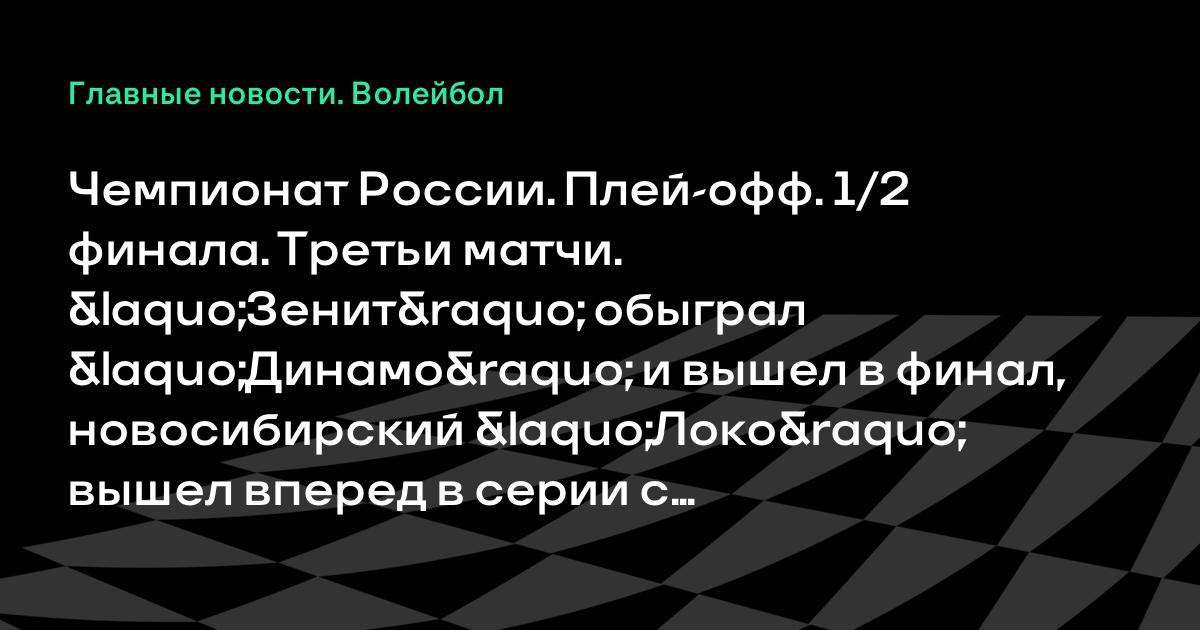 Чемпионат России. Плей-офф. 1/2 финала. Третьи матчи. «Зенит» обыграл «Динамо» и вышел в финал, новосибирский «Локо» вышел вперед в серии с «Белогорьем»