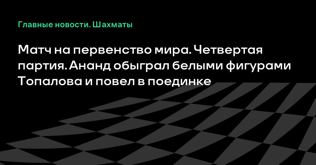 Матч на первенство мира. Четвертая партия. Ананд обыграл белыми фигурами Топалова и повел в поединке