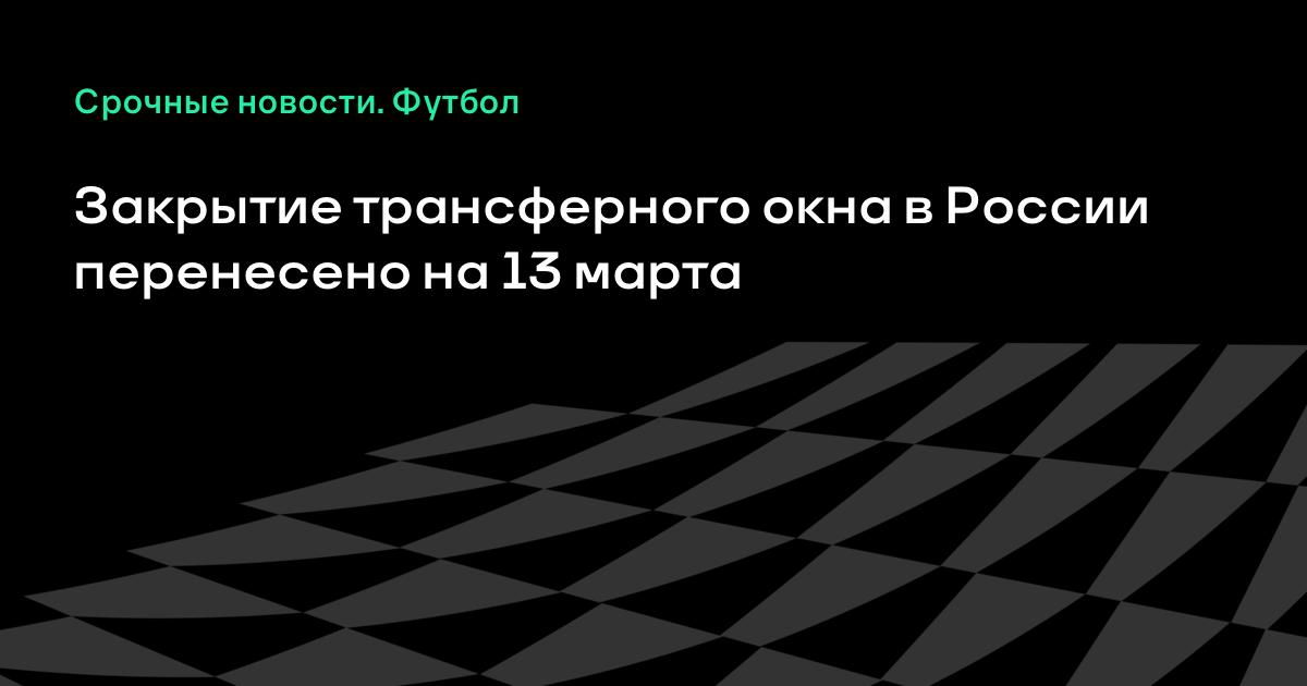 Закрытие трансферного окна в России перенесено на 13 марта, на одни сутки вперед. Это связано с тем, что на 14 марта была сдвинута дата начала 1-го тура в российской премьер-лиге.