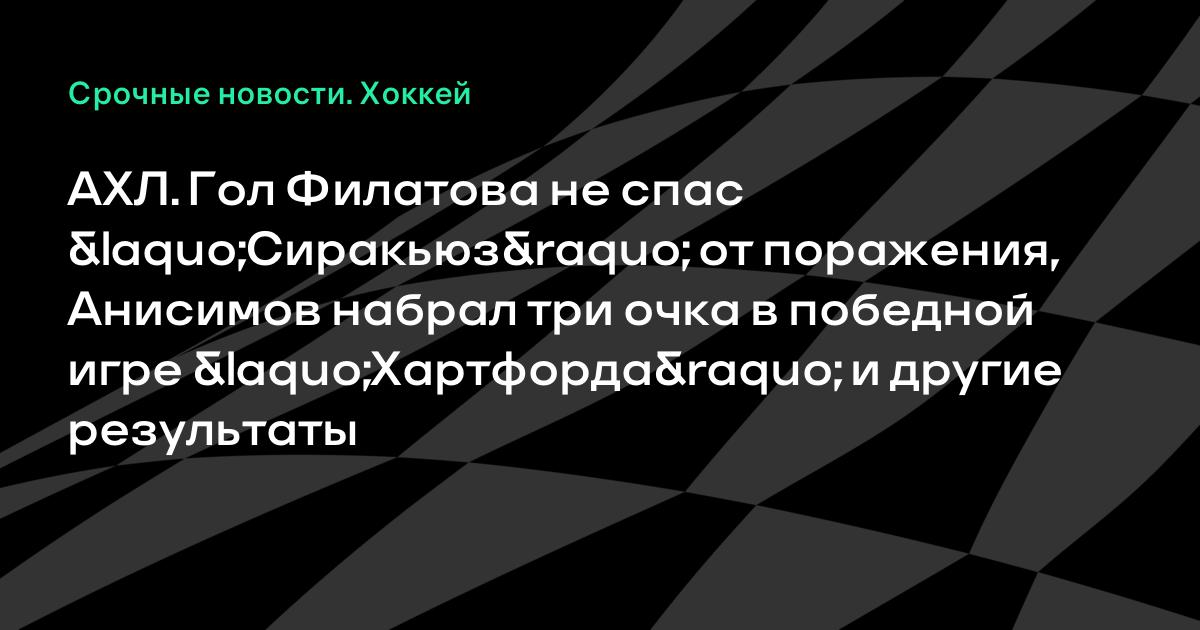 АХЛ. Гол Филатова не спас «Сиракьюз» от поражения, Анисимов набрал три очка в победной игре «Хартфорда» и другие результаты