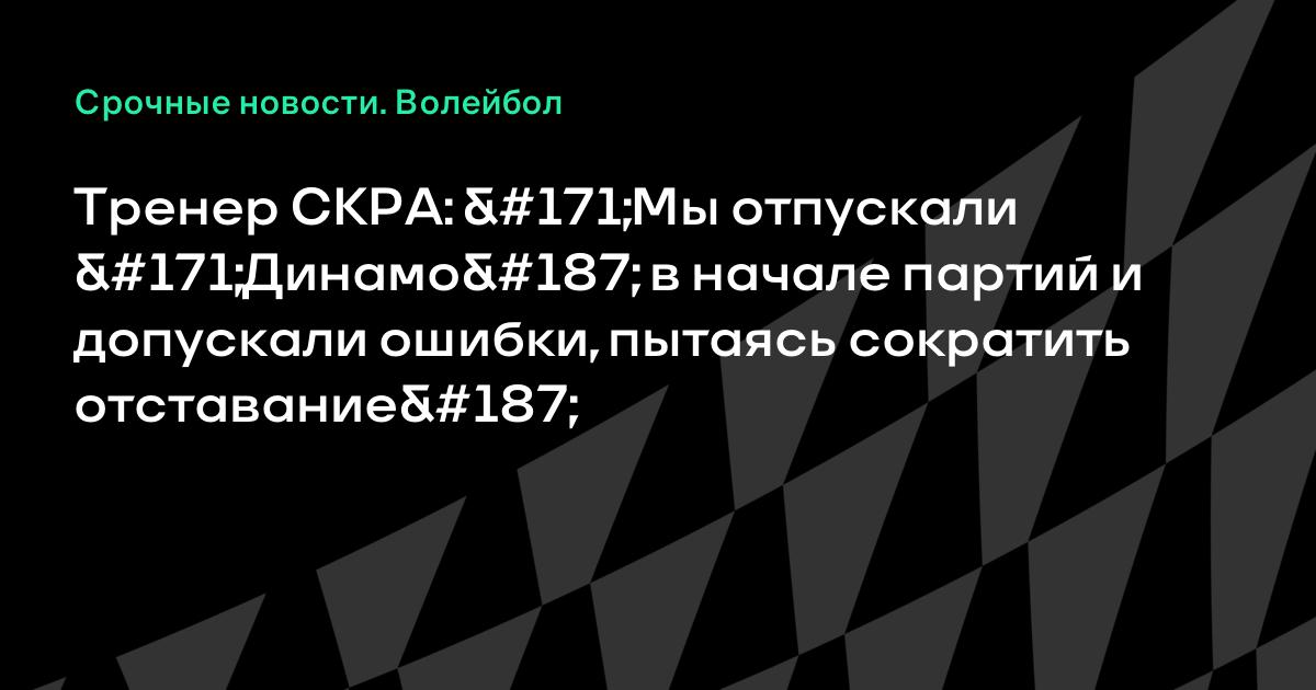 Тренер СКРА: «Мы отпускали «Динамо» в начале партий и допускали ошибки, пытаясь сократить отставание»