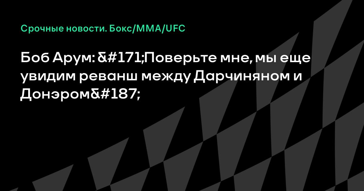 «Я прекрасно видел, как Донэр пробивал Дарчиняна в их первом поединке, а затем все еще и увидели Дарчиняна на помосте ринга. Не волнуйтесь, я обязательно поговорю с Гари Шо и предложу ему провести реванш между Дарчиняном и Донэром. Поверьте мне, мы еще увидим этот бой», цитирует Боба Арума Boxingscene.com.