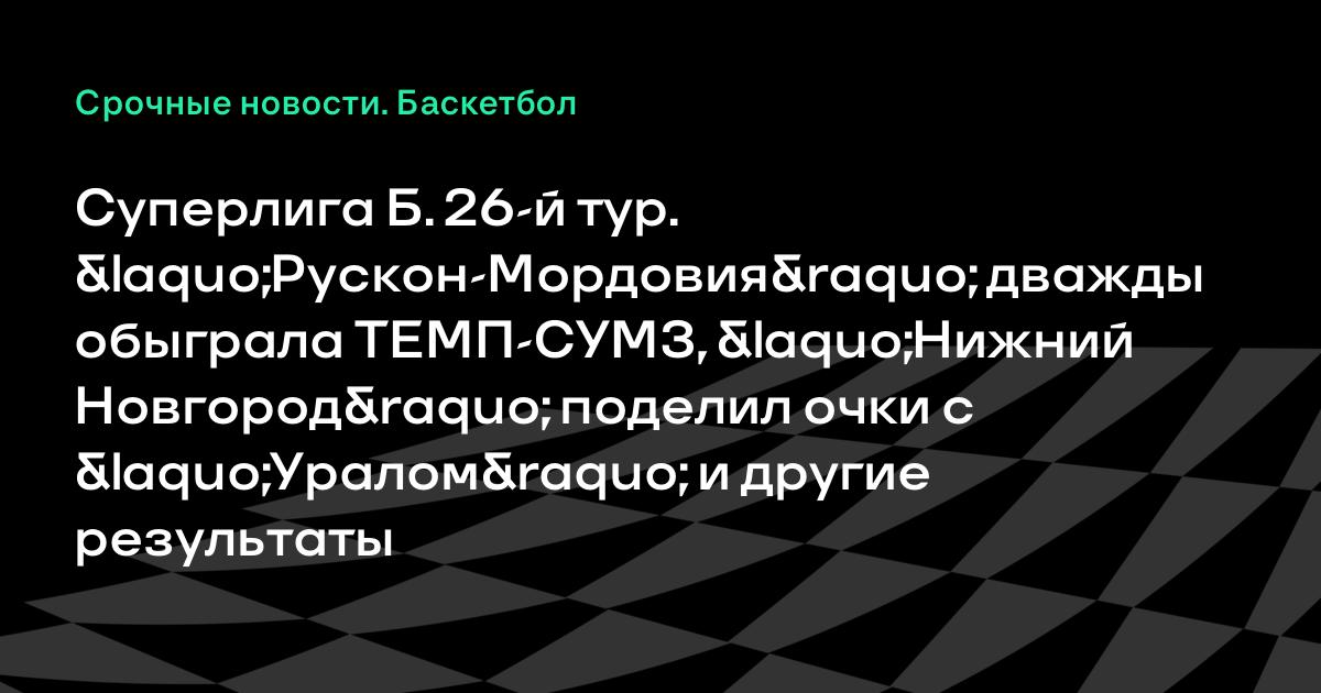 Суперлига Б. 26-й тур. «Рускон-Мордовия» дважды обыграла ТЕМП-СУМЗ, «Нижний Новгород» поделил очки с «Уралом» и другие результаты