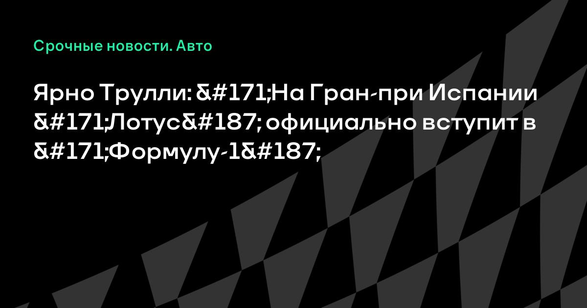 Ярно Трулли: «На Гран-при Испании «Лотус» официально вступит в «Формулу-1»