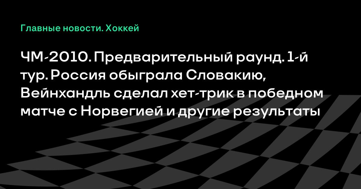 ЧМ-2010. Предварительный раунд. 1-й тур. Россия обыграла Словакию, Вейнхандль сделал хет-трик в победном матче с Норвегией и другие результаты