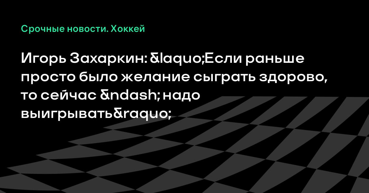 Игорь Захаркин: «Если раньше просто было желание сыграть здорово, то сейчас – надо выигрывать»