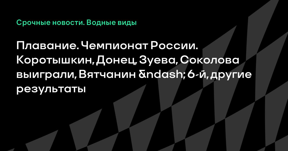 Плавание. Чемпионат России. Коротышкин, Донец, Зуева, Соколова выиграли, Вятчанин – 6-й, другие результаты
