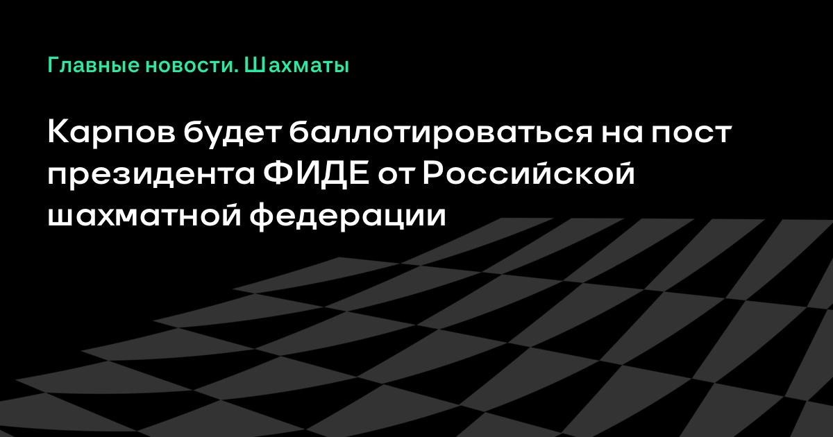 Двенадцатый чемпион мира по шахматам Анатолий Карпов выдвинут кандидатом на пост президента Международной шахматной федерации (ФИДЕ) от Российской шахматной федерации (РШФ).