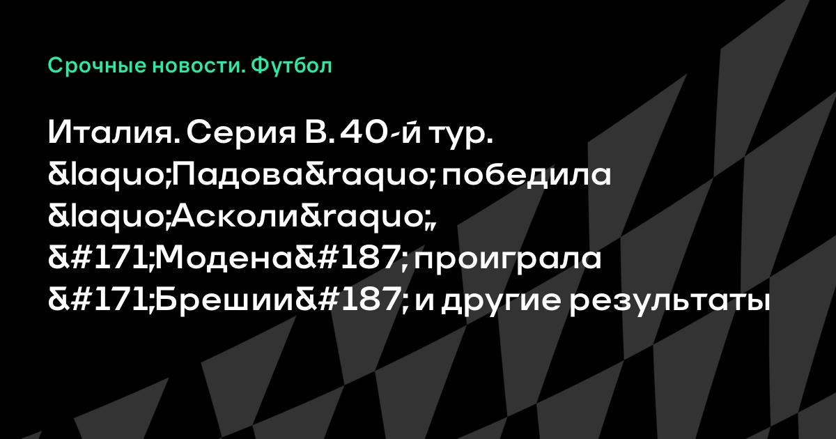 Италия. Серия В. 40-й тур. «Падова» победила «Асколи», «Модена» проиграла «Брешии» и другие результаты