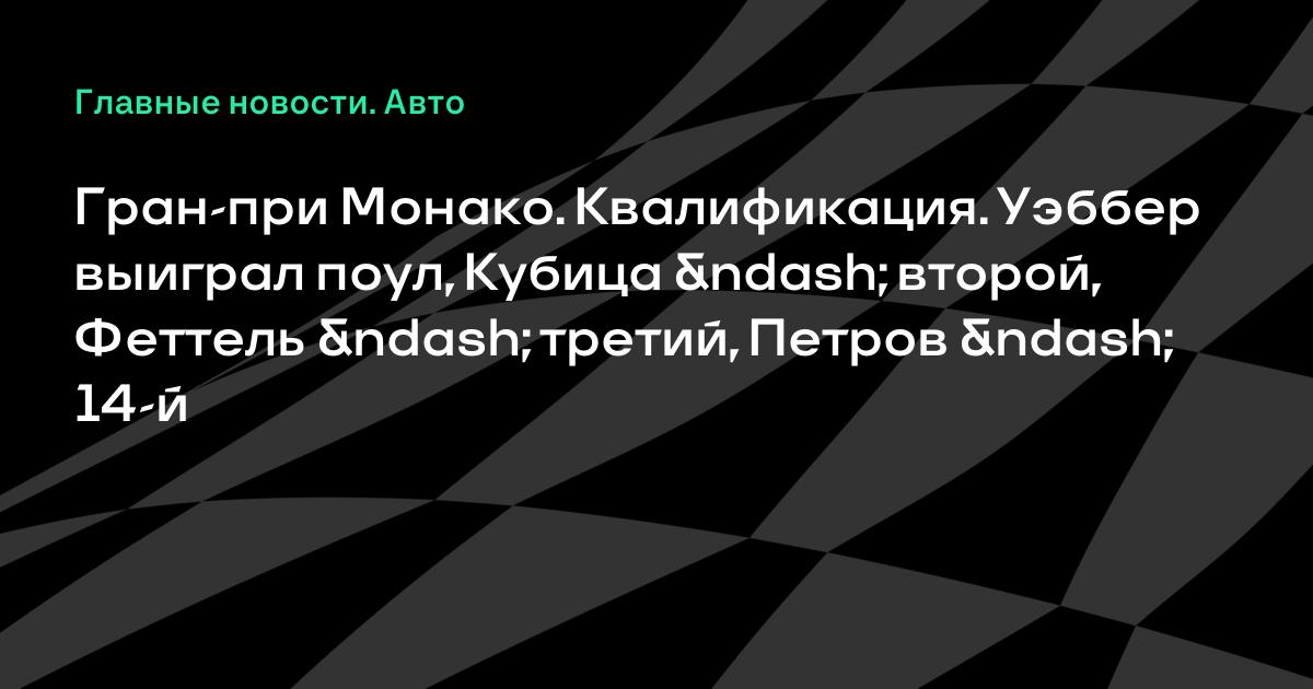Гран-при Монако. Квалификация. Уэббер выиграл поул, Кубица – второй, Феттель – третий, Петров – 14-й