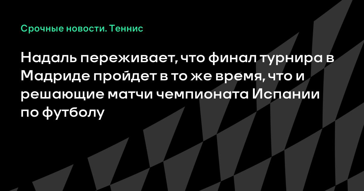 Финал мужского турнира серии Masters 1000 в Мадриде, где сыграют Роджер Федерер и Рафаэль Надаль, пройдет в то же время, что и матчи чемпионата Испании по футболу «Реал» «Малага» и «Барселона» «Вальядолид». В этих матчах и решится, кто станет чемпионом Испании в этом сезоне «Барселона» опережает «Реал» всего на одно очко. Футбольные матчи начнутся в 21:00 по московскому времени, а финал турнира в Мадриде в 20:30.