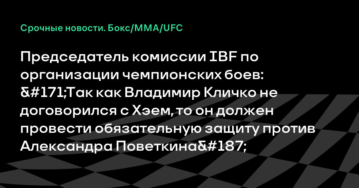 Председатель комиссии IBF по организации чемпионских боев: «Так как Владимир Кличко не договорился с Хэем, то он должен провести обязательную защиту против Александра Поветкина»