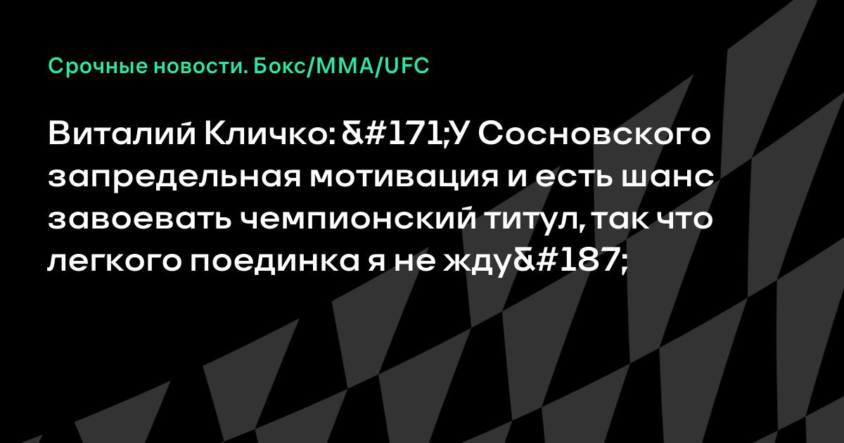 Виталий Кличко: «У Сосновского запредельная мотивация и есть шанс завоевать чемпионский титул, так что легкого поединка я не жду»