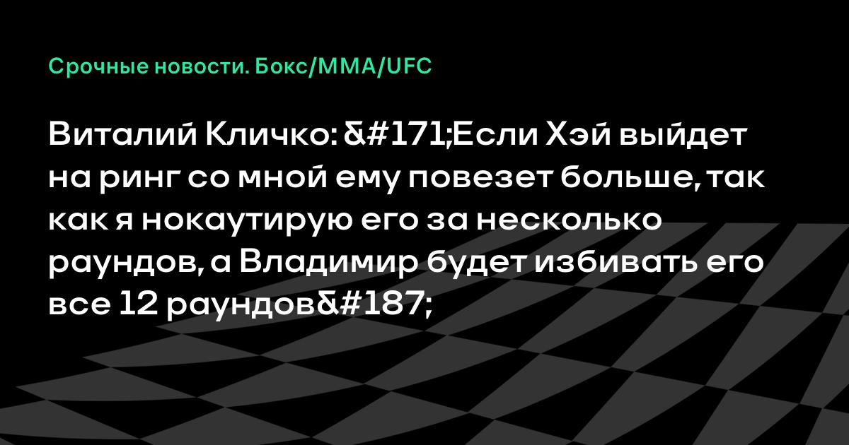 «Хэй знает, что в бою со мной или с моим братом для него может быть только один исход поражение. Если он выберет в качестве соперника меня, то ему немного повезет, так как я нокаутирую его за несколько раундов, а вот если он встретится в ринге с Владимиром, тут ему придется туго. Владимир его будет избивать все 12 раундов. Для него это уже личное. В любом случае ему придется встретиться с кем-то из нас и тогда все увидят, что он просто болтун и ничего более», цитирует Виталия Кличко Boxingscene.com.