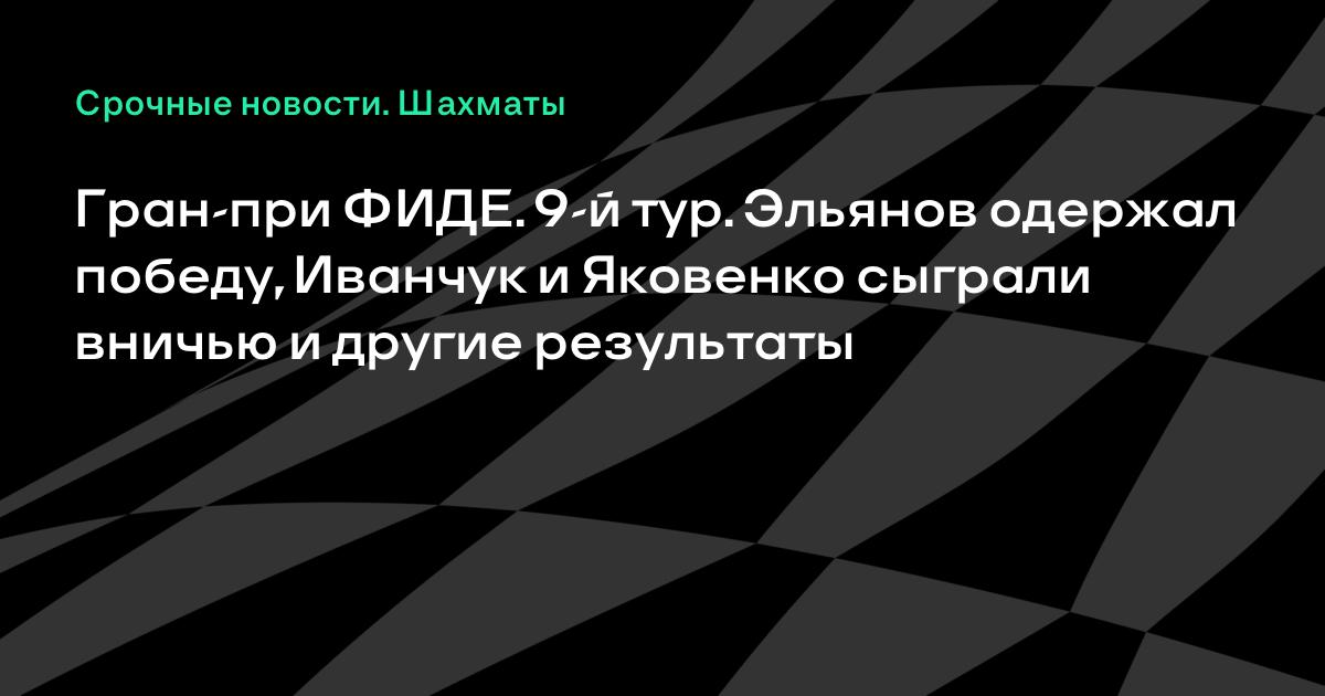 Гран-при ФИДЕ. 9-й тур. Эльянов одержал победу, Иванчук и Яковенко сыграли вничью и другие результаты