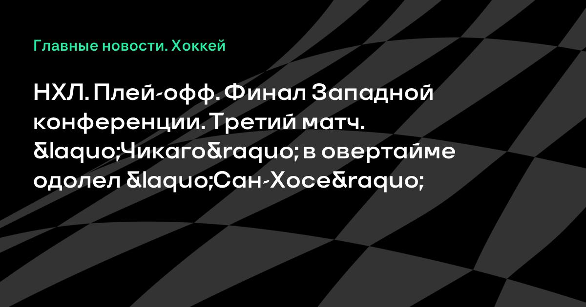 НХЛ. Плей-офф. Финал Западной конференции. Третий матч. «Чикаго» в овертайме одолел «Сан-Хосе»