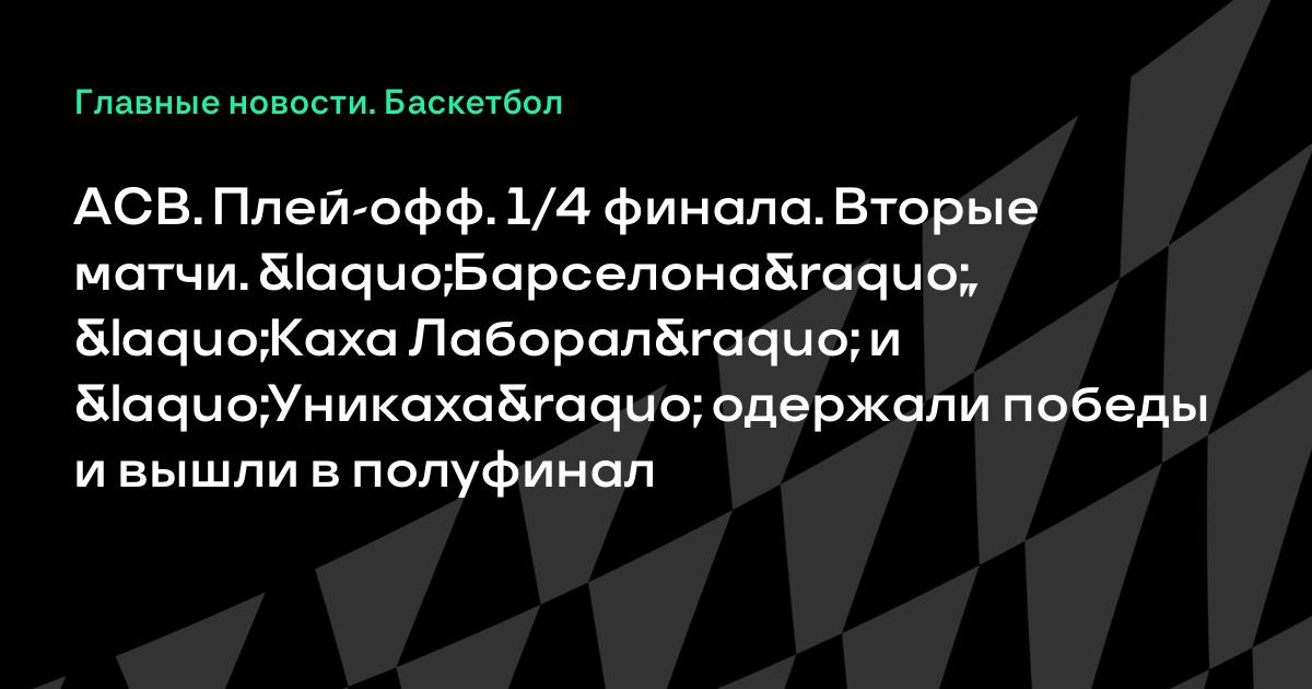 АСВ. Плей-офф. 1/4 финала. Вторые матчи. «Барселона», «Каха Лаборал» и «Уникаха» одержали победы и вышли в полуфинал