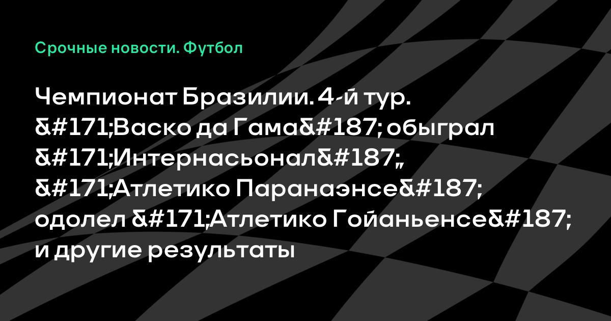 Чемпионат Бразилии. 4-й тур. «Васко да Гама» обыграл «Интернасьонал», «Атлетико Паранаэнсе» одолел «Атлетико Гойаньенсе» и другие результаты