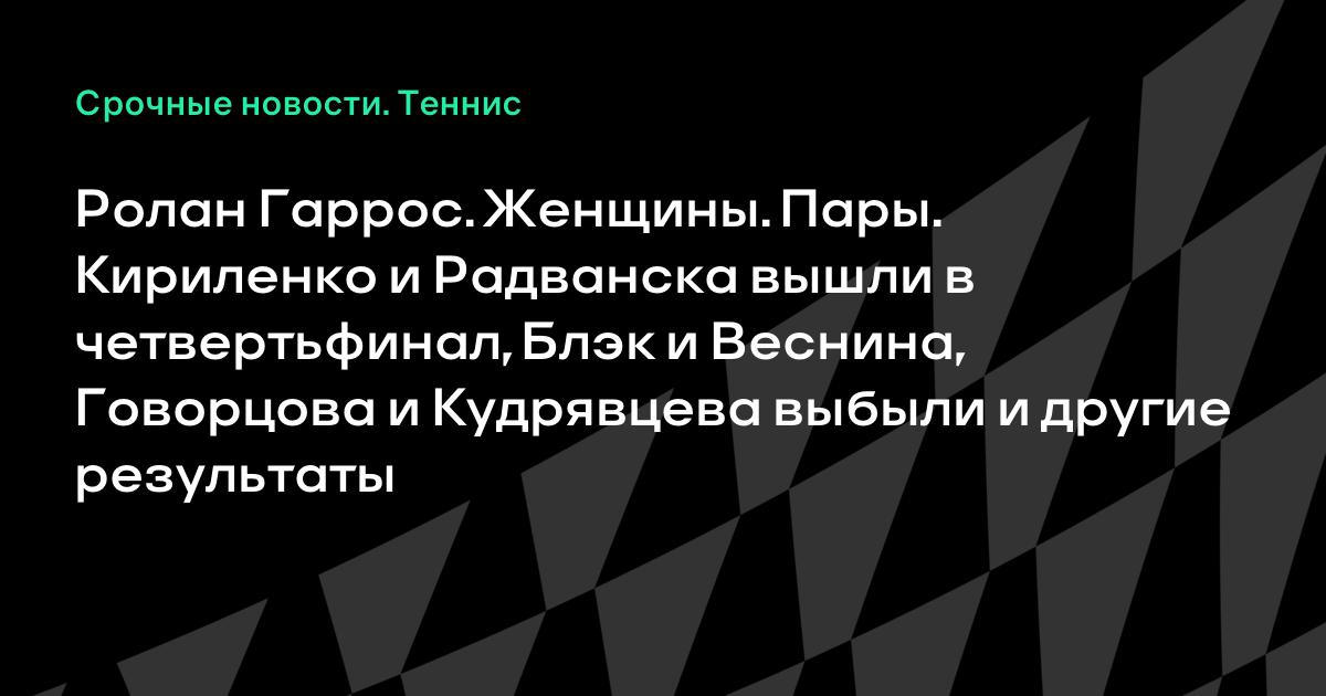 Ролан Гаррос. Женщины. Пары. Кириленко и Радванска вышли в четвертьфинал, Блэк и Веснина, Говорцова и Кудрявцева выбыли и другие результаты