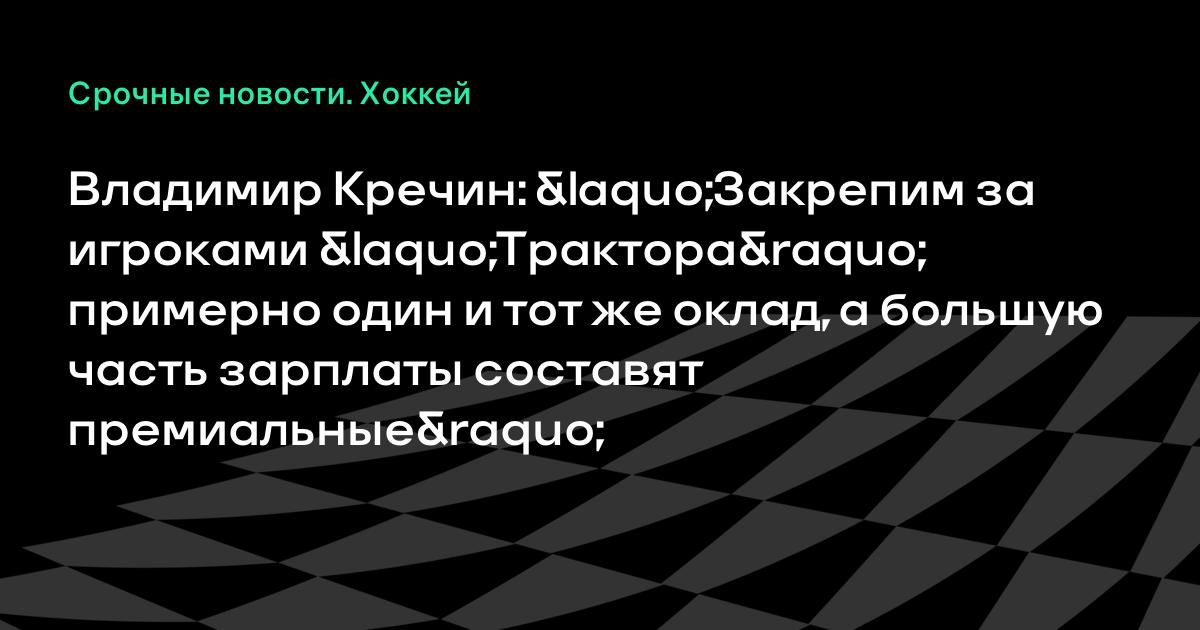 Владимир Кречин: «Закрепим за игроками «Трактора» примерно один и тот же оклад, а большую часть зарплаты составят премиальные»