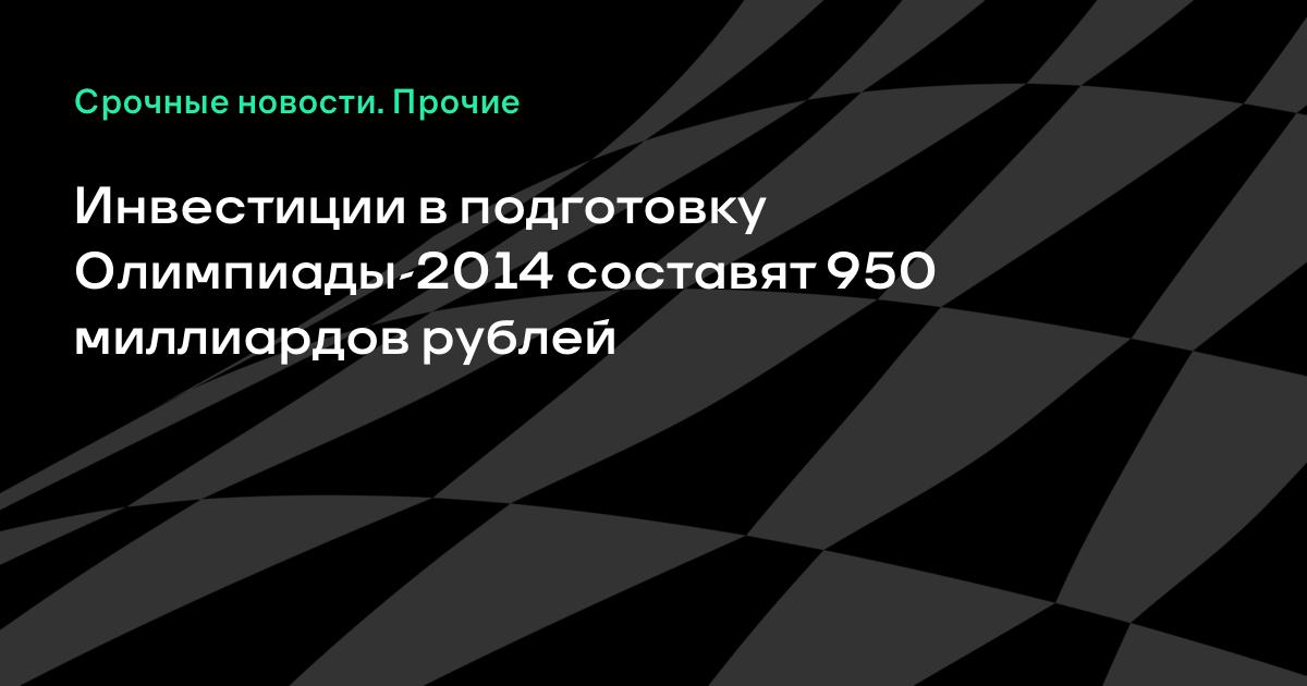 Инвестиции в подготовку Олимпиады-2014 составят 950 миллиардов рублей
