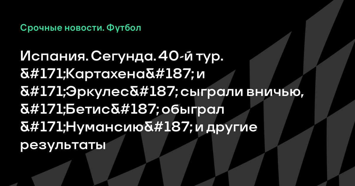 Испания. Сегунда. 40-й тур. «Картахена» и «Эркулес» сыграли вничью, «Бетис» обыграл «Нумансию» и другие результаты