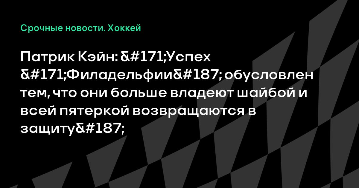 Патрик Кэйн: «Успех «Филадельфии» обусловлен тем, что они больше владеют шайбой и всей пятеркой возвращаются в защиту»