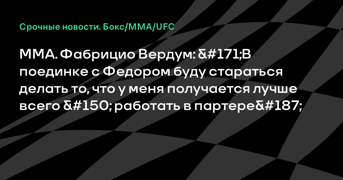 MMA. Фабрицио Вердум: «В поединке с Федором буду стараться делать то, что у меня получается лучше всего работать в партере»