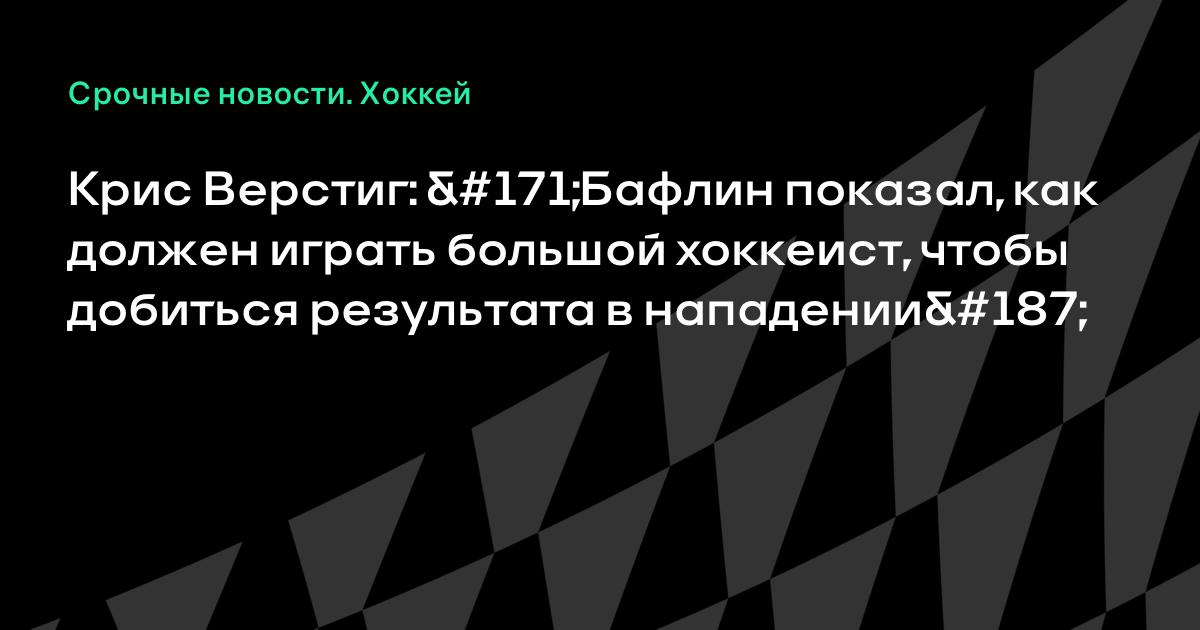 Крис Верстиг: «Бафлин показал, как должен играть большой хоккеист, чтобы добиться результата в нападении»