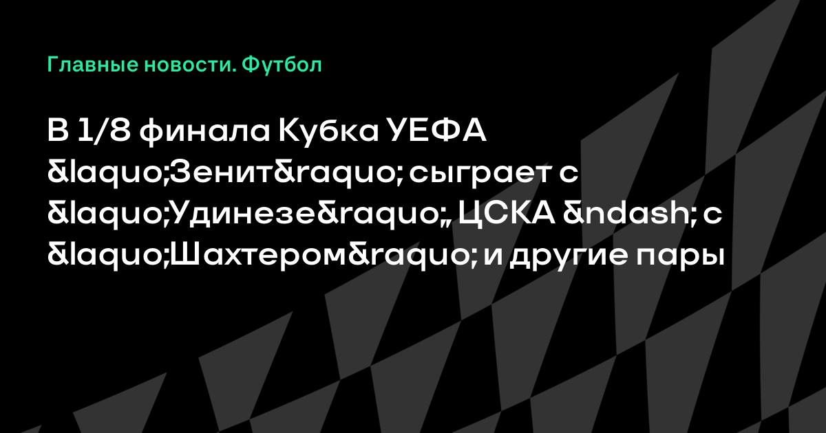 В 1/8 финала Кубка УЕФА «Зенит» сыграет с «Удинезе», ЦСКА – с «Шахтером» и другие пары