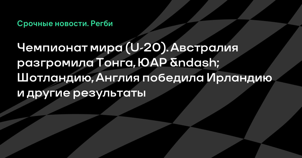 Чемпионат мира (U-20). Австралия разгромила Тонга, ЮАР – Шотландию, Англия победила Ирландию и другие результаты