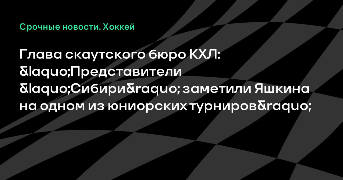 Глава скаутского бюро КХЛ: «Представители «Сибири» заметили Яшкина на одном из юниорских турниров»