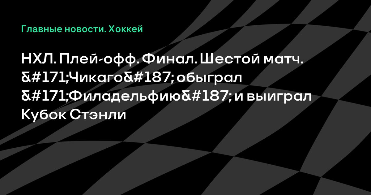 НХЛ. Плей-офф. Финал. Шестой матч. «Чикаго» обыграл «Филадельфию» и выиграл Кубок Стэнли