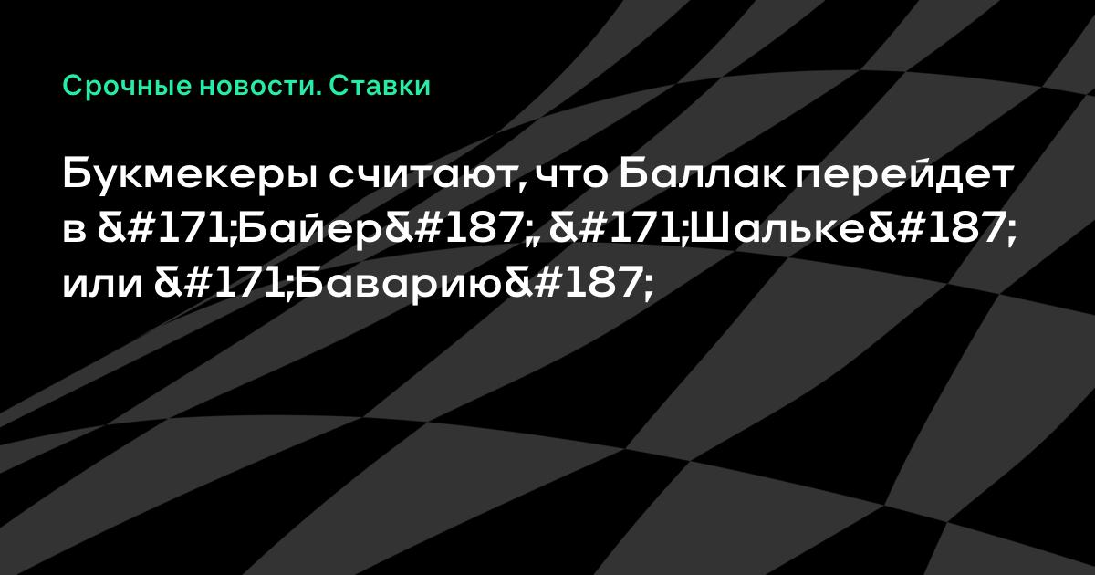 Букмекеры полагают, что полузащитник «Челси» Михаэль Баллак, который летом покинет команду, продолжит карьеру в Германии. Главными претендентами на 33-летнего ветерана, по мнению Sky Bet, являются леверкузенский «Байер», «Шальке-04» и мюнхенская «Бавария». Контора дает за эти варианты одинаковый коэффициент 6.