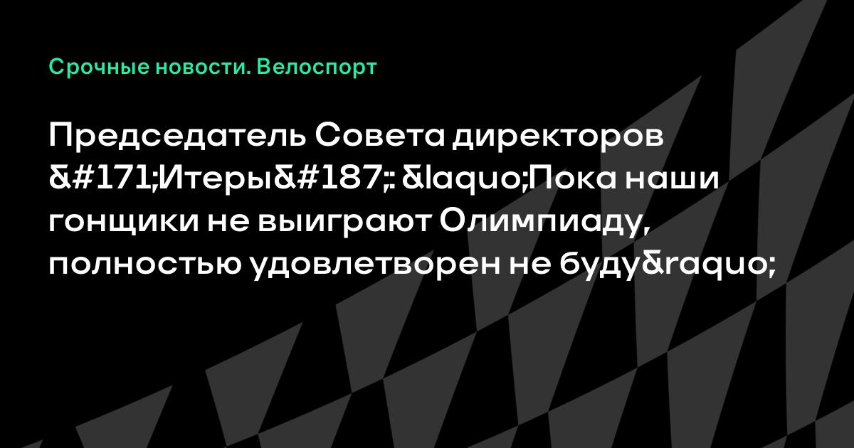 Председатель Совета директоров «Итеры»: «Пока наши гонщики не выиграют Олимпиаду, полностью удовлетворен не буду»
