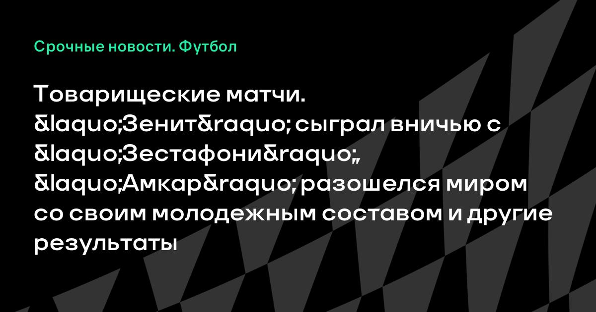 Товарищеские матчи. «Зенит» сыграл вничью с «Зестафони», «Амкар» разошелся миром со своим молодежным составом и другие результаты