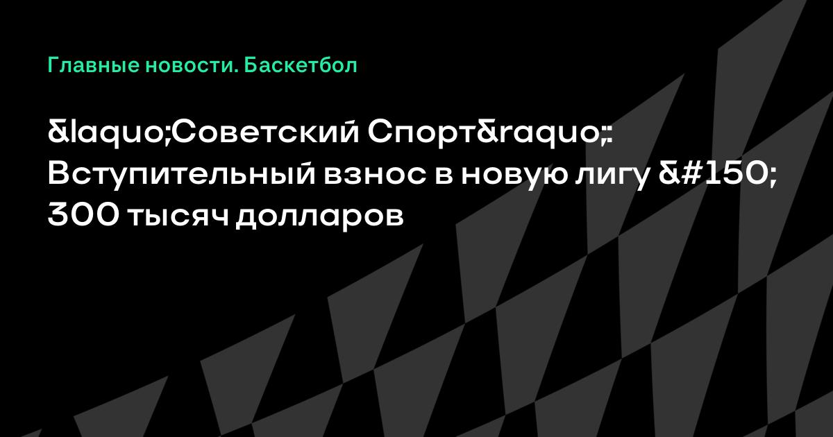«Советский Спорт»: Вступительный взнос в новую лигу 300 тысяч долларов