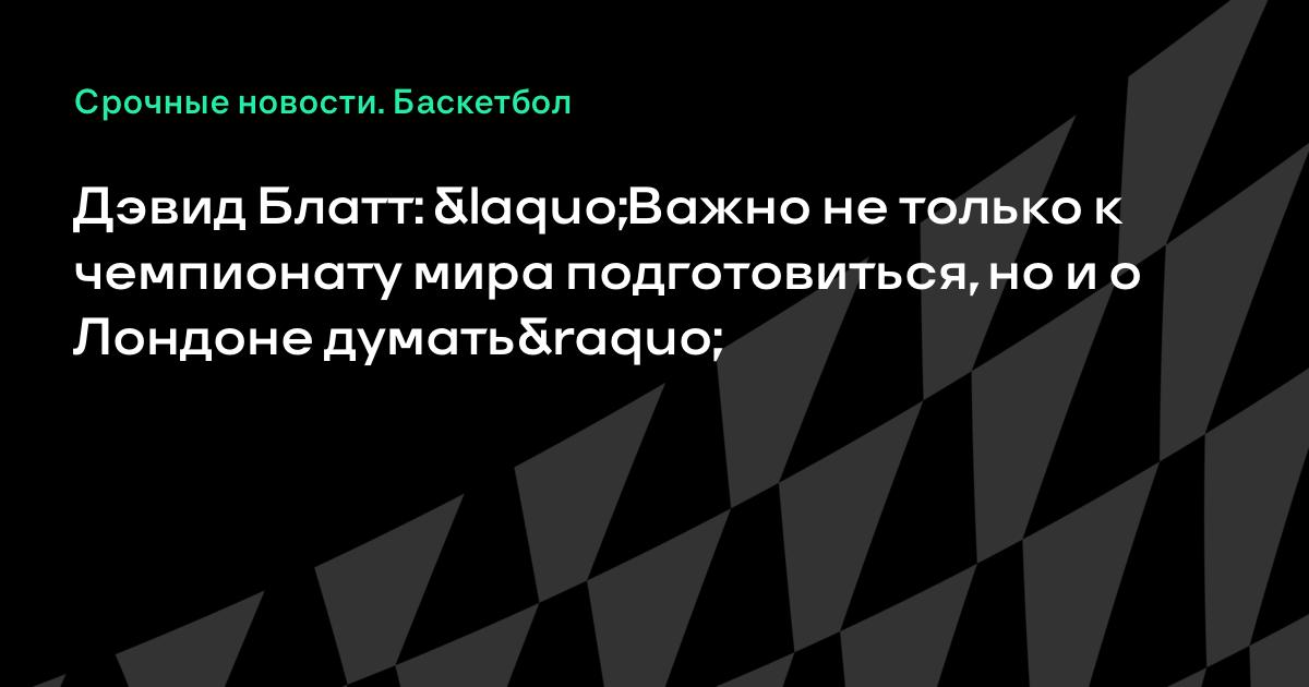 Дэвид Блатт: «Важно не только к чемпионату мира подготовиться, но и о Лондоне думать»