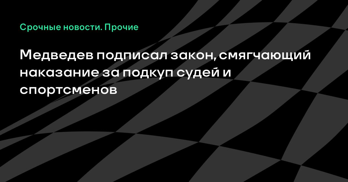 Президент России Дмитрий Медведев подписал Федеральный закон «О внесении изменения в статью 184 Уголовного кодекса Российской Федерации», касающийся ответственности за подкуп на спортивных соревнованиях.