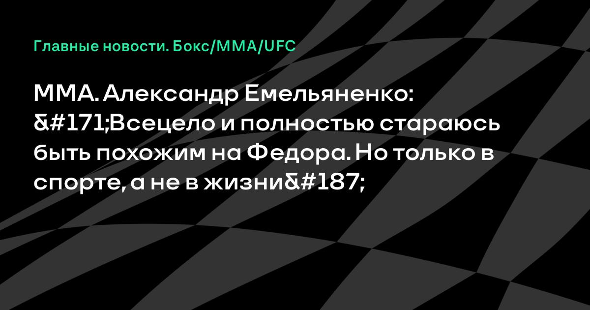 MMA. Александр Емельяненко: «Всецело и полностью стараюсь быть похожим на Федора. Но только в спорте, а не в жизни»