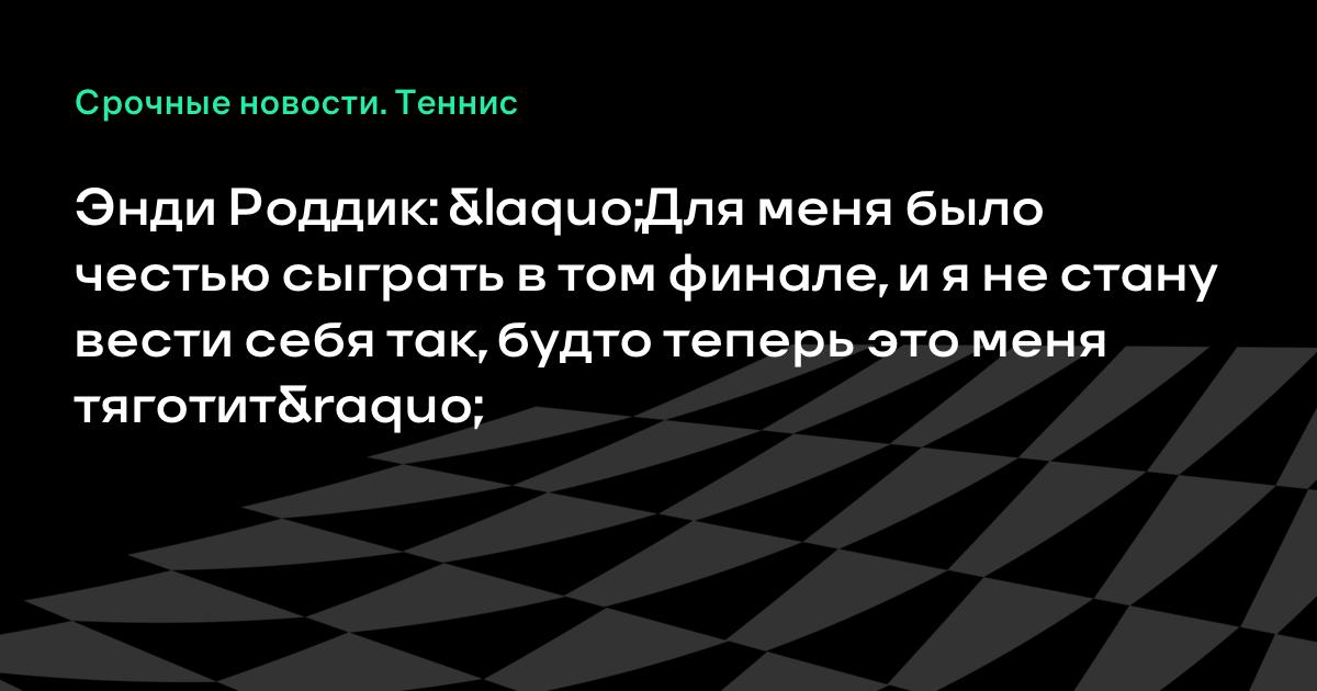 Как только я приехал, меня тут же спросили: «Как ты собираешься забыть прошлый год?» Я не собирась его забывать. Это невозможно. Это один из главных моментов моей жизни. Как бы я ни хотел сосредоточиться только на нынешнем турнире, я понимаю, что это исключено. Но я не позволю этому слишком беспокоить меня. Для меня было честью сыграть в том финале. И я не стану вести себя так, будто теперь это стало для меня тяготить», цитирует Роддика официальный сайт турниар.