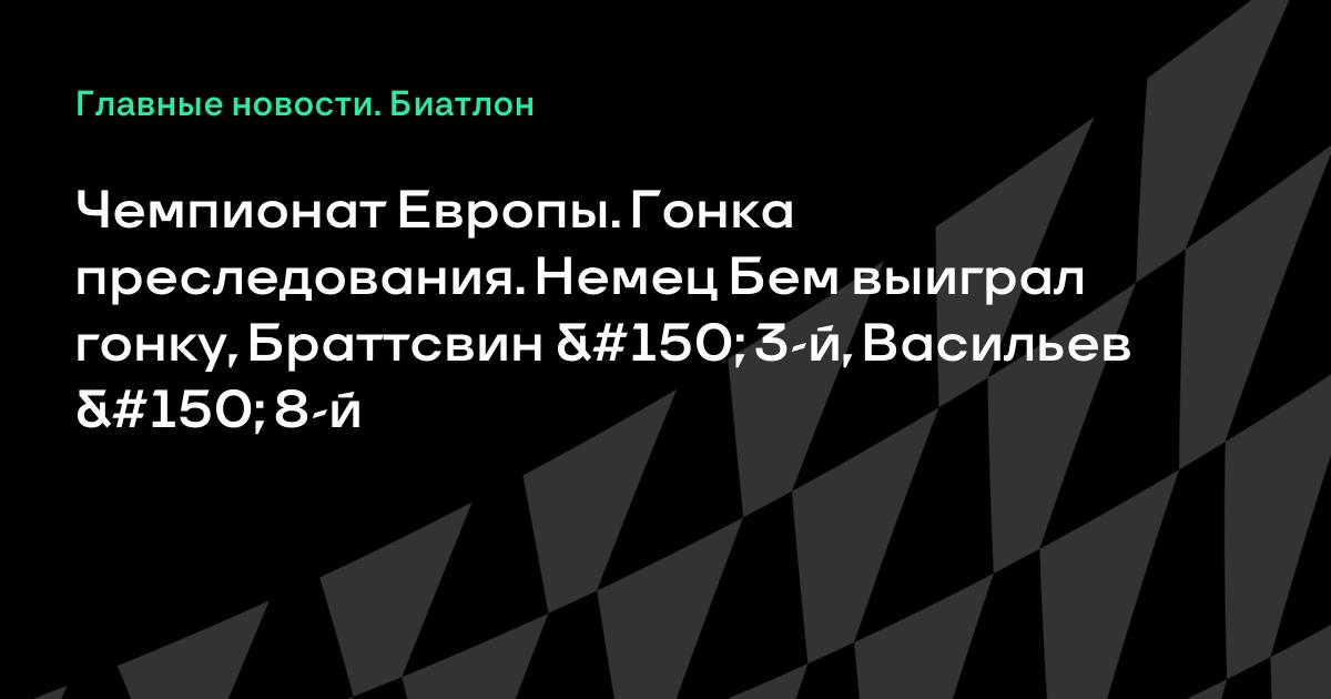 Чемпионат Европы. Гонка преследования. Немец Бем выиграл гонку, Браттсвин 3-й, Васильев 8-й