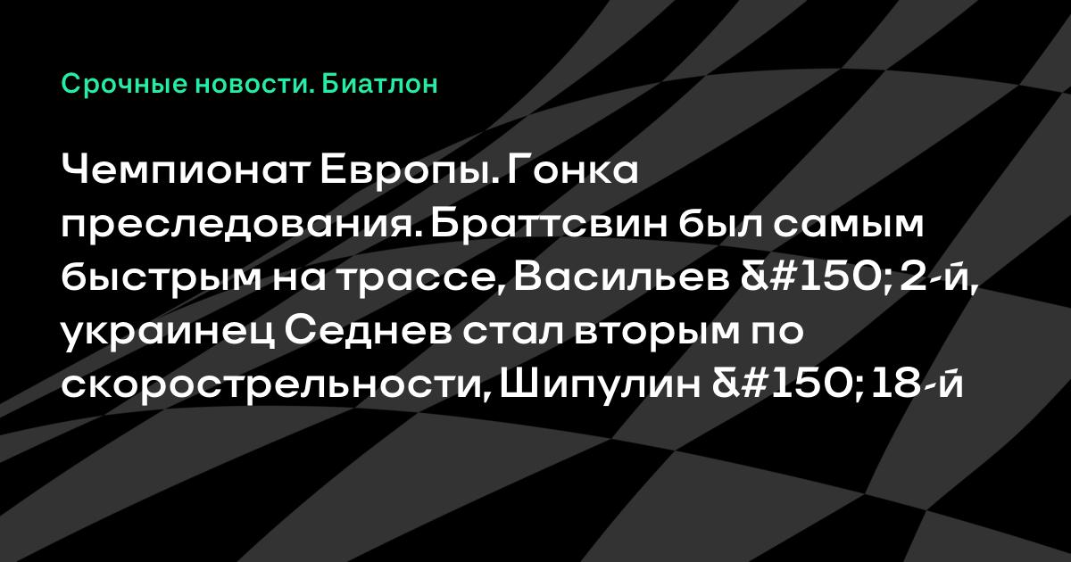 Чемпионат Европы. Гонка преследования. Браттсвин был самым быстрым на трассе, Васильев 2-й, украинец Седнев стал вторым по скорострельности, Шипулин 18-й