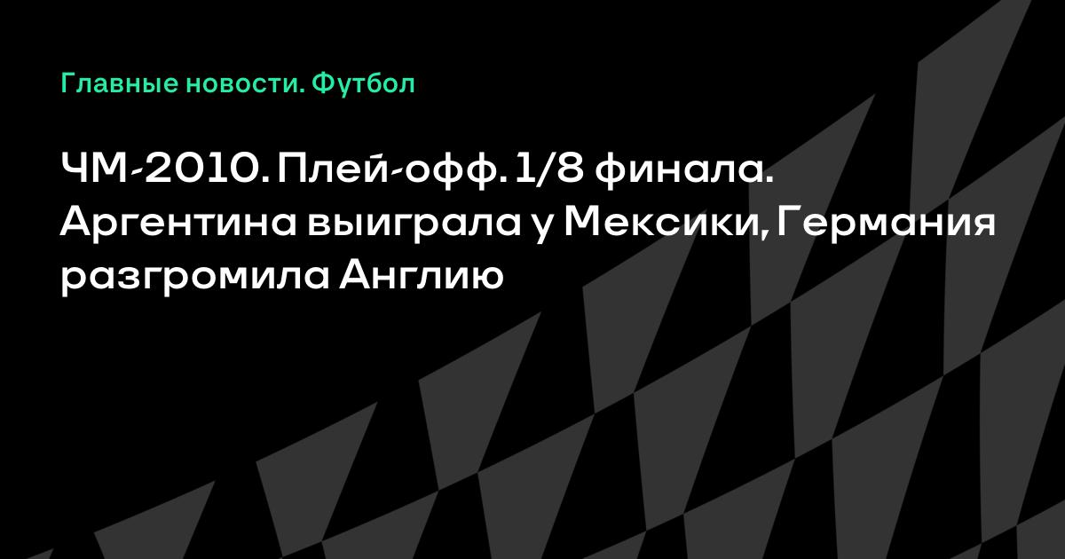 28 июня 2010, 00:21 ЧМ-2010. Плей-офф. 1/8 финала. Аргентина выиграла у Мексики, Германия разгромила Англию ЧМ-2010 ЮАР Плей-офф 1/8 финала ПРИМЕЧАНИЕ: время начала матчей московское. Посмотреть календарь ЧМ-2010 вы можете здесь, а подробную статистику здесь. Футбол Сборная Англии по футболу Сборная Германии по футболу Сборная Аргентины по футболу результаты ЧМ-2010 Сборная Мексики по футболу ЧМ-2018 FIFA