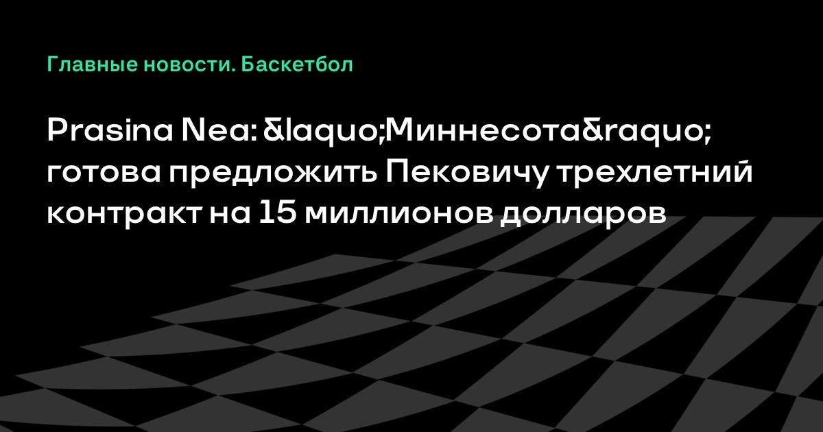 Черногорский центровой «Панатинаикоса» Никола Пекович (24 года, 211 см) определится со своим будущим до 15 июля. По сведениям греческого ресурса PrasinaNea.gr, «Миннесота» готова предложить игроку 15 миллионов долларов за трехлетнее соглашение.
