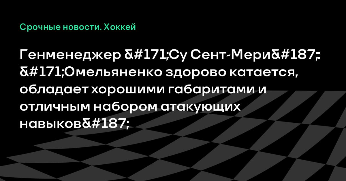 Генменеджер «Су Сент-Мери»: «Омельяненко здорово катается, обладает хорошими габаритами и отличным набором атакующих навыков»