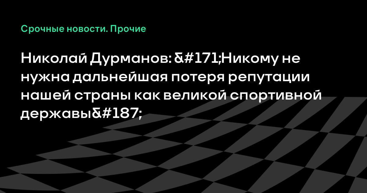 Николай Дурманов: «Никому не нужна дальнейшая потеря репутации нашей страны как великой спортивной державы»